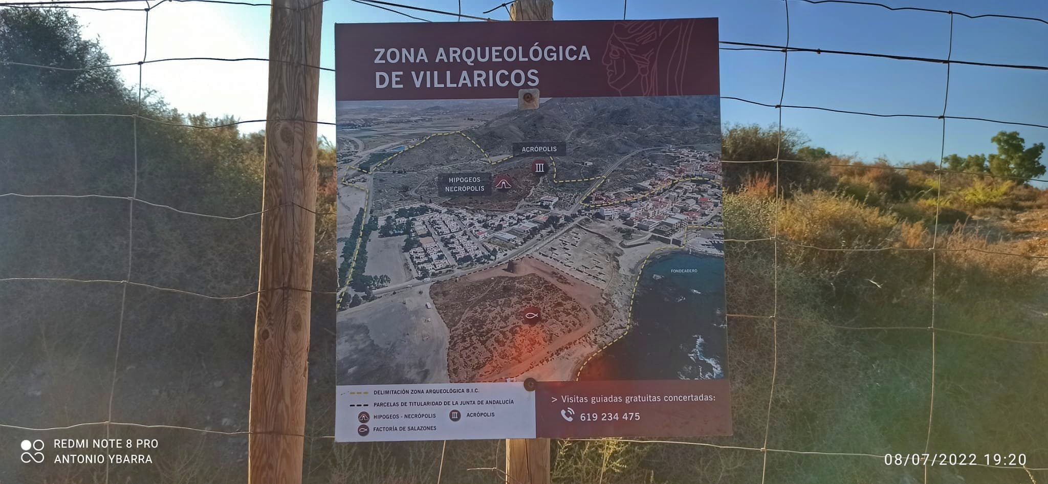 Iniciamos el sendero rodeando los salazones de pescado o sus restos que se encuentran detrás del castillo así como un antiguo bunquer recuerdo de la guerra civil. Con vistas al mar en total calma nos dirigimos hacia la cala de Luis Siret, dejamos la cala atras y pasando por el cruce rotonda de entrada a Villaricos nos dirigimos hacia el yacimiento Fenicio.